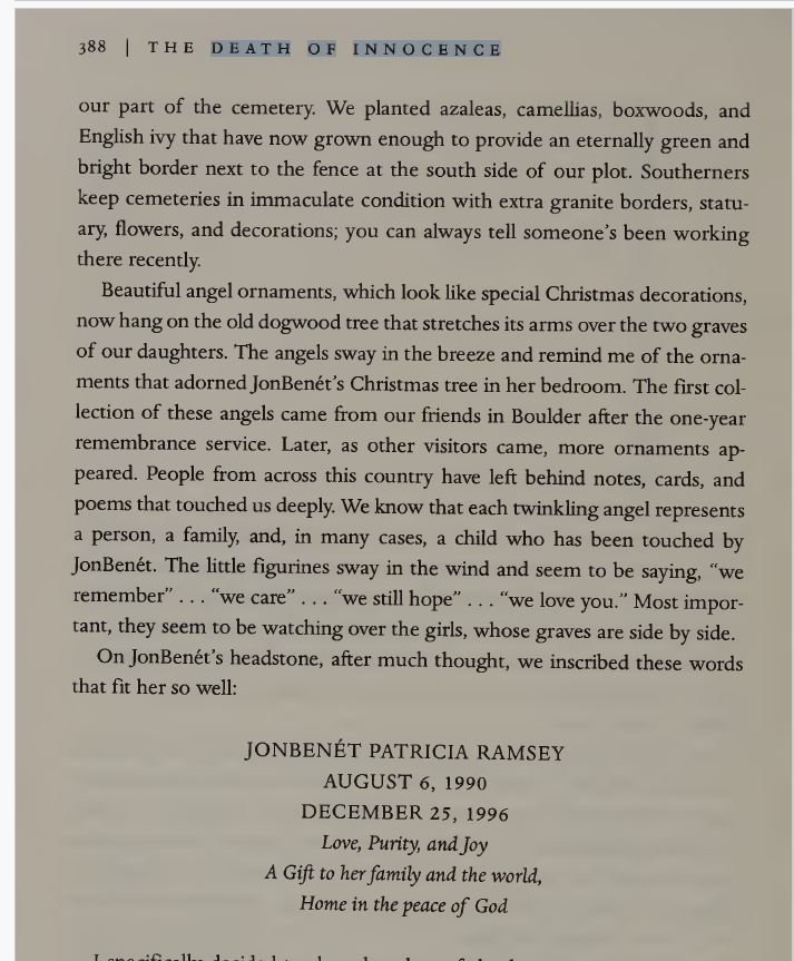 I wouldn't want to profit either. Neither did the Ramseys. All proceeds from that book went to a foundation in JonBenet's name to fund child safety initiatives.