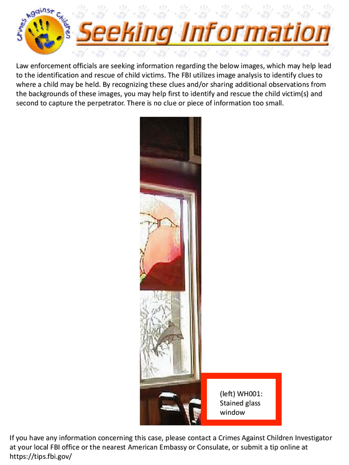 At first I was fixated on the duck & dolphin. But the FBI link has a link to a 16 page flier full of other photos. Idk if all one place or many locations. I get rural area vibe- older predator imo.