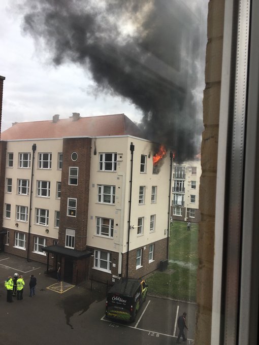 Flames were seen shooting from the windows with thick black smoke billowing into the sky.