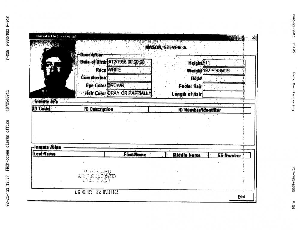 Decedent was a natural death at his residence. He was identified visually by his wife, with the ID being confirmed by prints in 2006. However, it was recently discovered that the decedent was living under the fake identity of "Steven A. Mason" for 10+ years. Real identity is unknown.