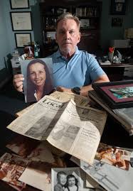 Charlie Bockwith holds a print of the last professional portrait taken of his sister Barbara while sitting among a stack of family photos and newspaper articles at his office in Pensacola on Thursday, Aug. 29, 2024. Bockwith’s 20-year-old sister Barbara went missing on Dec. 5, 1979. While the case remains unsolved, it is believed that Barbara was killed by her ex-boyfriend Robert Deaver who took his own life days later.