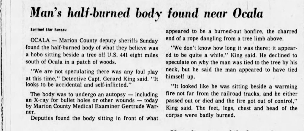 - The victim was discovered on January 29, 1978 in Belleview, Marion County, Florida.