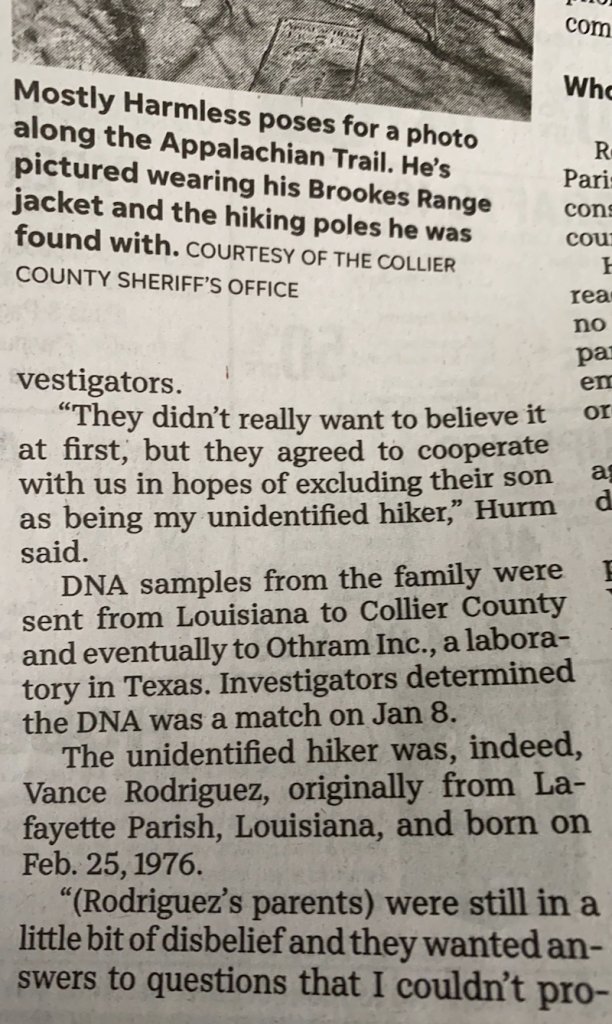 Hey @othram what publication is this from, I would love to read the whole article.A different article from today, which mentions the family interactions with the lead detective on the case. It is pretty clear that the family was surprised and did not expect Mostly Harmless to be Vance.