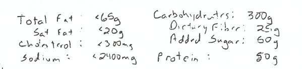 it's almost like he couldn't bear to write down what he considered to be the expected intake of a "normal" person because he knew he didn't get anywhere near that amount for whatever reason. Or this was sensitive to him for whatever reason.