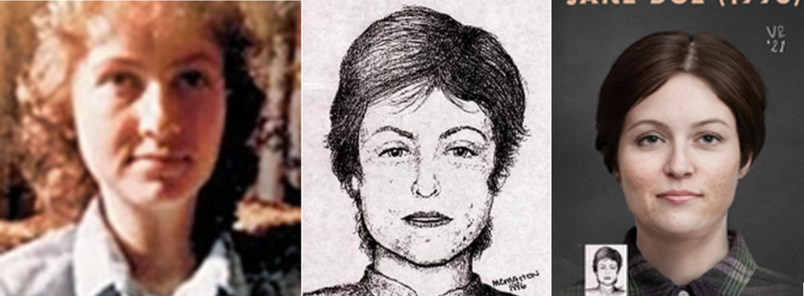Putting the photos side by side, the resemblance is evident to me. The timing from 1985-1996 could be her being homeless and unknown. About 2-3 hours between locations.The National Missing and Unidentified Persons System (NamUs)