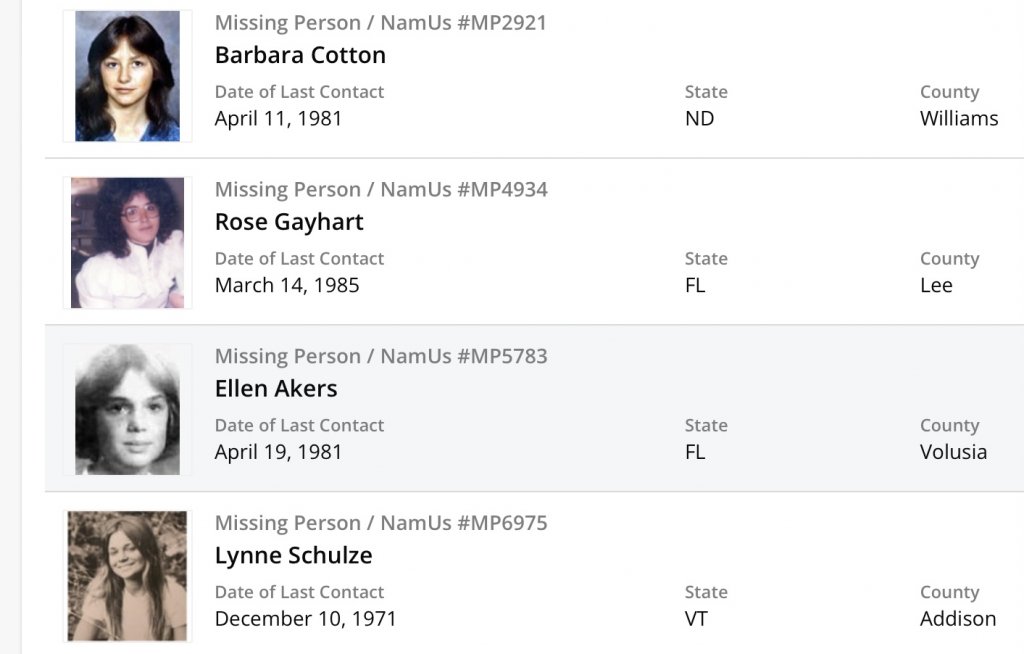13 Missing Person Exclusions@Caring1 Hey could you post the NamUs exclusion list for this Broward County Jane Doe?