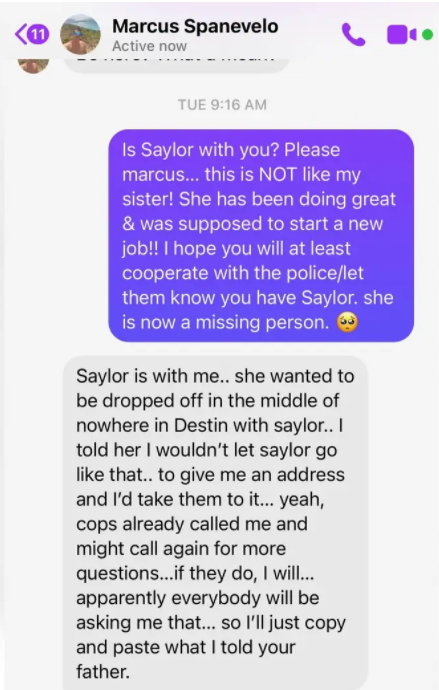 Probably when she arrived to see her girl was not there---and he said 'she'll be dropped off soon.' I thought we could discuss the custody issues first.....I wonder when she stopped being the author of her texts.