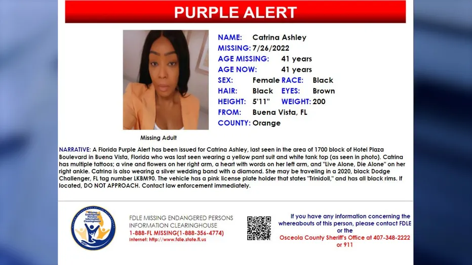 Purple Alert issued for missing Central Florida woman Catrina Ashley last seen leaving work early
