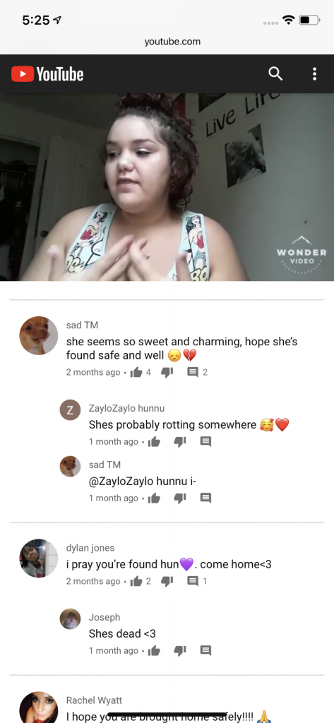 I found some really disturbing comments on Cieha’s YouTube channel. The only Joseph connected to her is the detective investigating her case. I can’t find the boyfriend’s name.