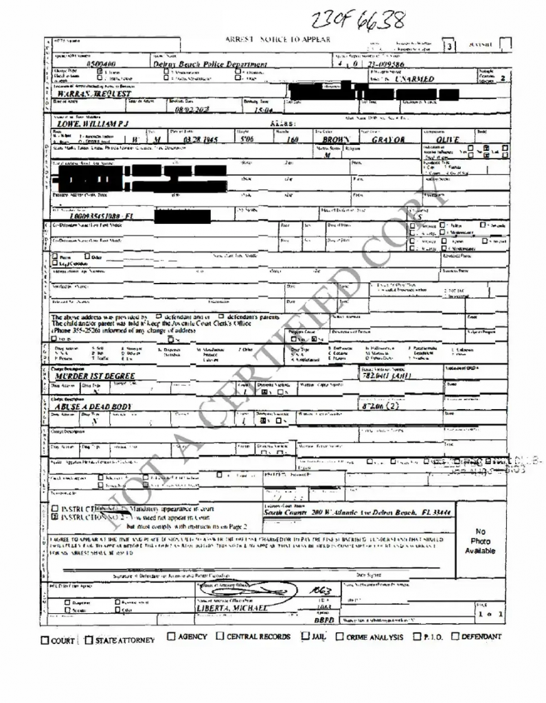 William Lowe, 78, was arrested Wednesday and charged with first-degree murder and abuse of a dead body in Delray Beach.