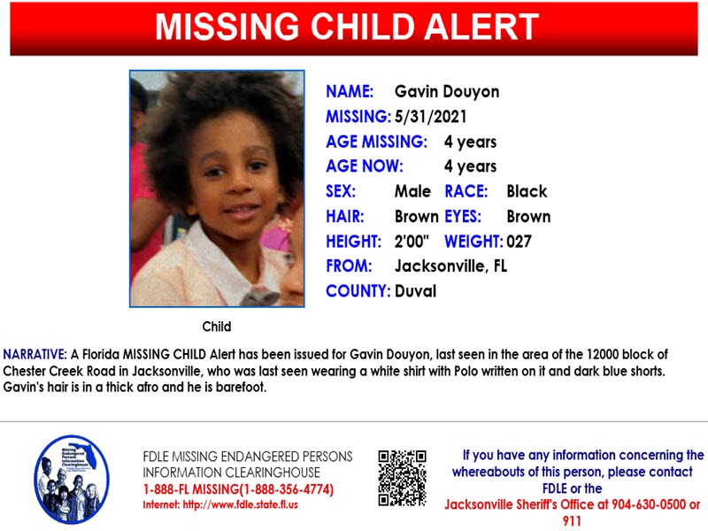 Anyone having seen or who may know the whereabouts of Gavin is asked to immediately call the Jacksonville Sheriff’s Office at 904-630-0500 or 911.