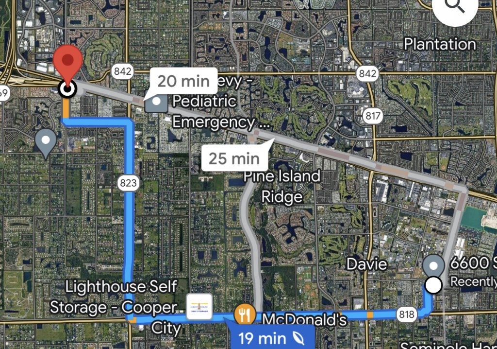 I mapped using the areas mentioned in the article and avoided 595. It looks like the next available route would be along Griffin.