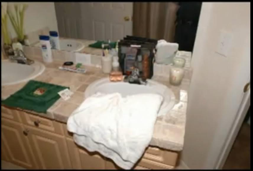 I'll add the picture of Jennifer's bathroom that comes from the special Greta did very early on in 2006--just days after Jennifer disappeared. So, keep that in mind--it's a re-enactment not the real thing. Or, at least, that's what I believe.