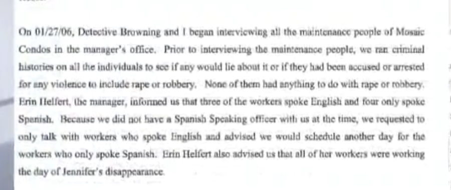 • Only a little over half of all the condos in the complex were occupied at the time of Jennifer's disappearance