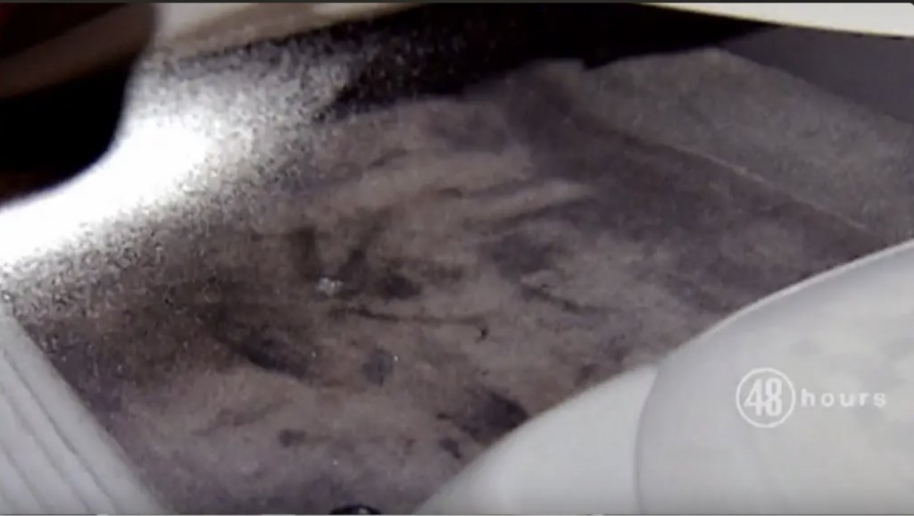 Wow. That went over my head. It is very strange that most of the stains are missing in the new image. I wonder what happened and when this was taken. Is it possible someone photoshopped the other stains out in order to highlight this? I have a few screenshots of the car after it was processed (notice the missing items and the fingerprint dust). Its of the passenger side, but those stains are still there. I don’t have a screenshot of the drivers side after the car was processed.