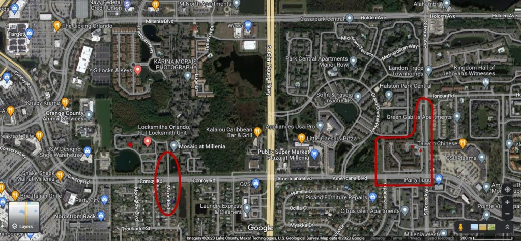 The pair drove through their development in the heart of Orlando coming to a stop sign at the intersection of Moxie Blvd. and Conroy Road. As “Juliet” flicked her right turn signal, she saw something. Her husband saw it, too.