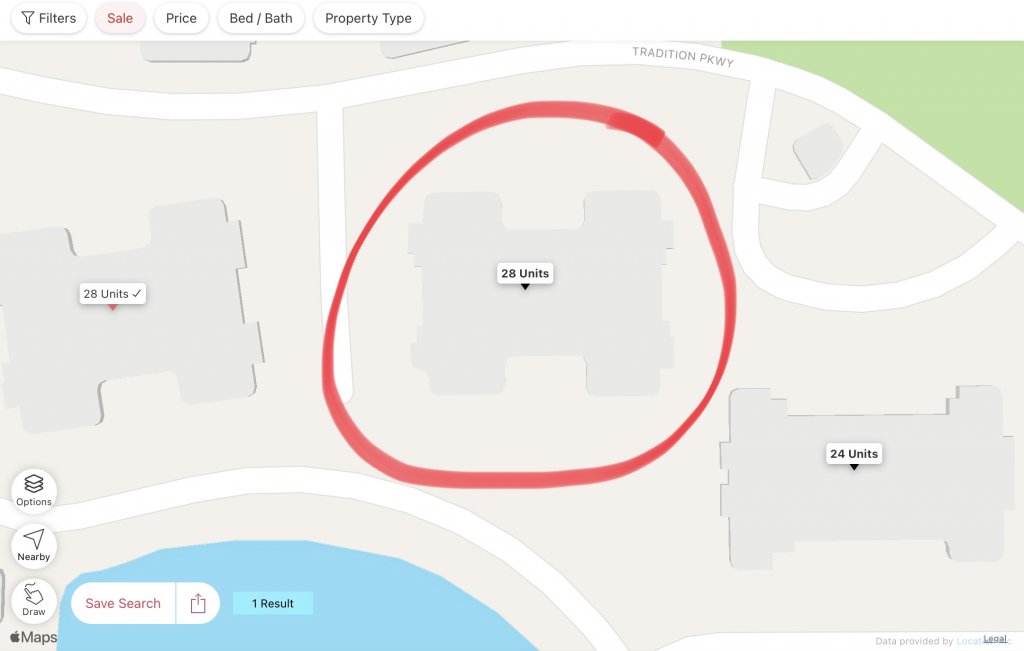 Data from realtor.com’s app showing number of units in building. Jennifer’s building circled in red.