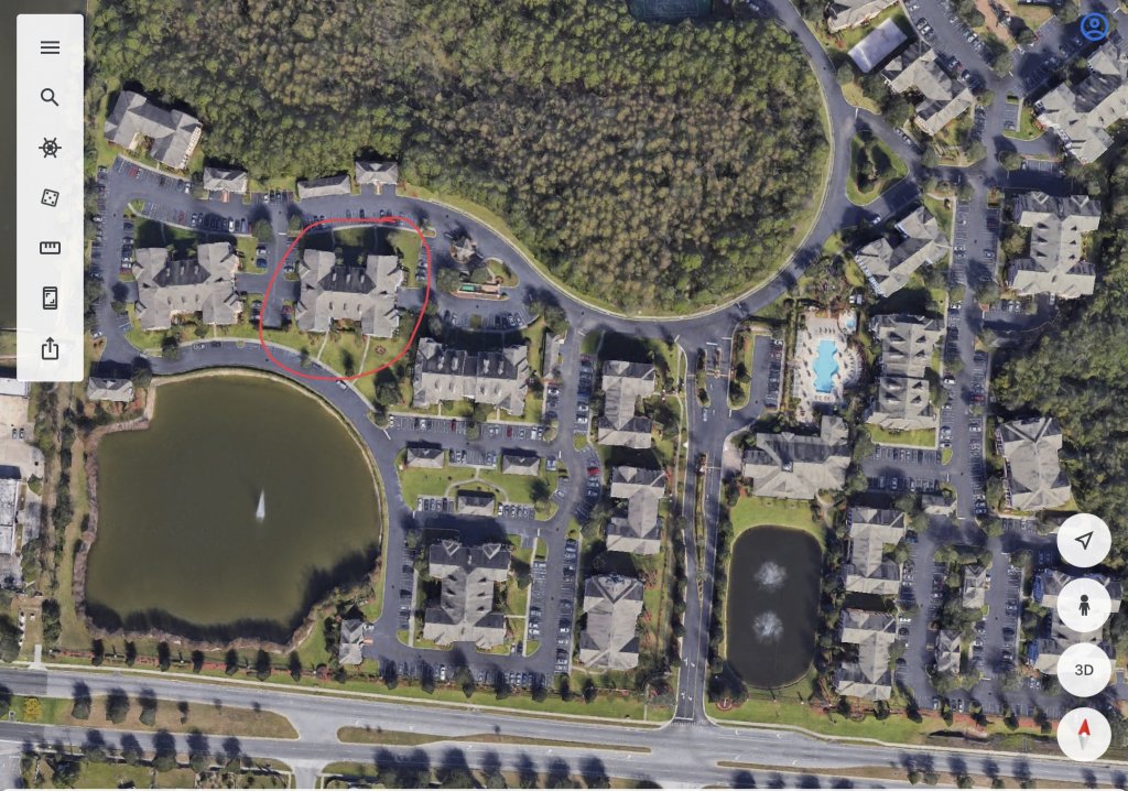 Zoomed out pic of Mosaic Complex. Her building circled in red.