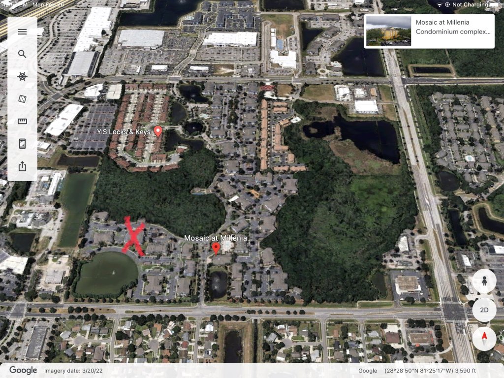 I like your thoughts regarding the car drop. They were already looking for Jennifer at Mosaic when the car was dropped. It was dropped at 12:00 pm. From what I can tell they started searching for Jennifer at Mosaic between 11:15 and 11:30 am. Also Mosaic was gated and had a guard at the guard station most of the time. There was no way the car was being returned to Mosaic due to the gate and guard.