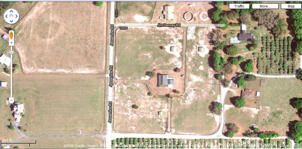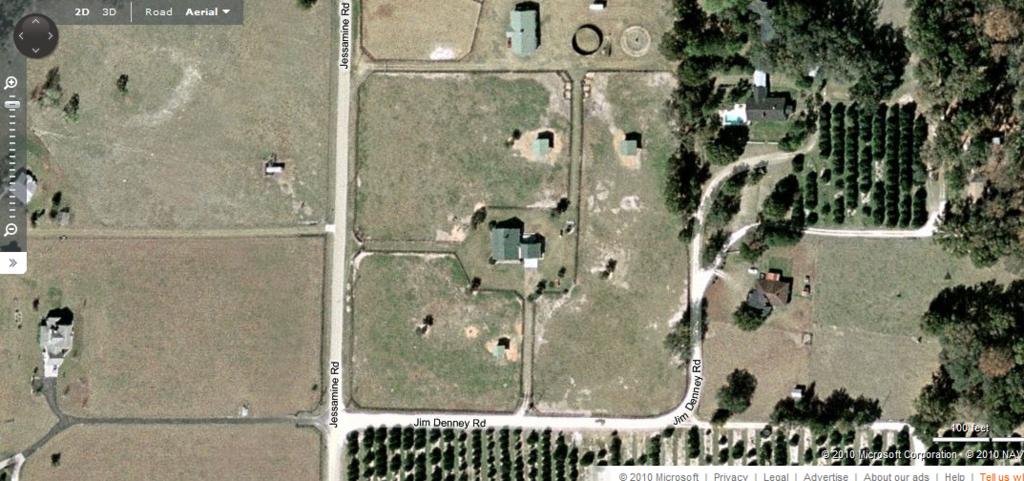 IMO, the Bing map is correct...is her house the one sitting in the middle? That would make about 200 yards...and she had to walk by the orange grove...or am I off? :waitasec: