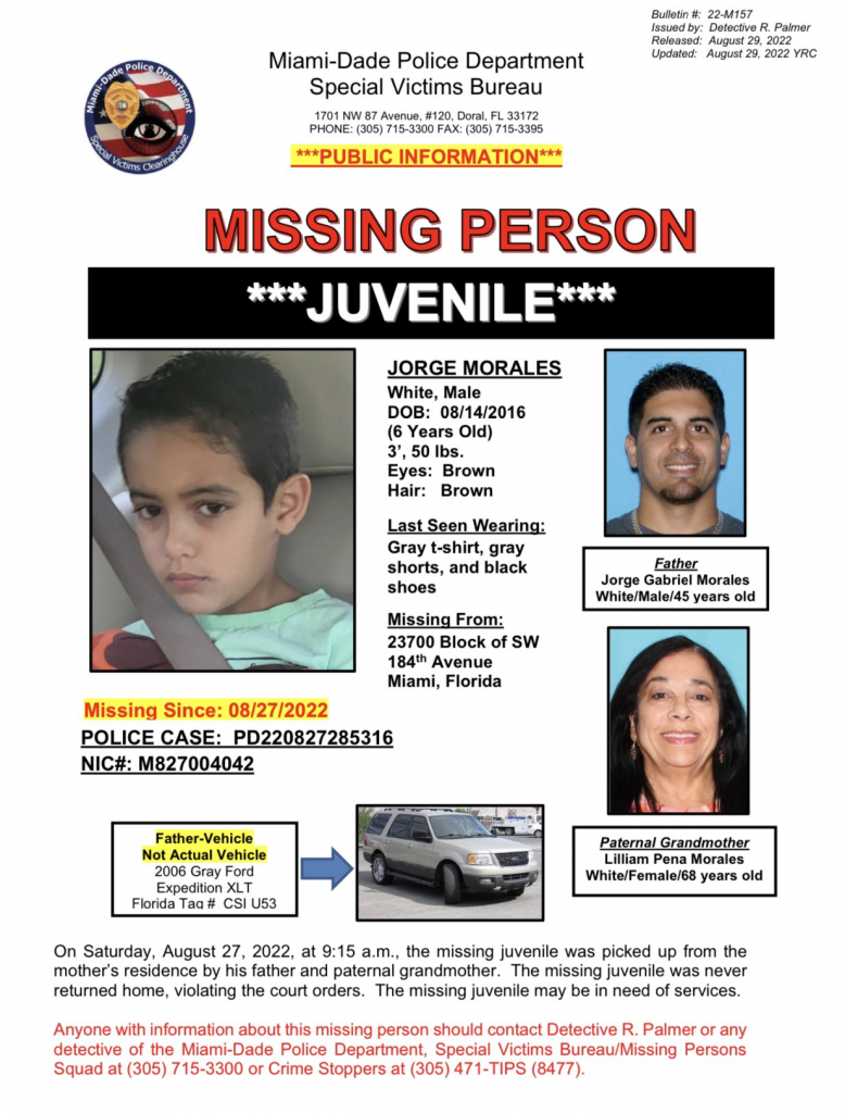Miami-Dade police are looking for JoJo Morales, who was believed to have been taken by his father Jorge Gabriel Morales, who lives in southwest Miami-Dade. JoJo has autism.
