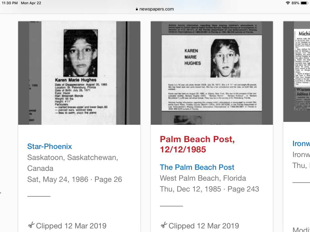 I couldn’t get these links to work. I often wonder if the children taken by their non custodial parent ever realize they were listed as missing.