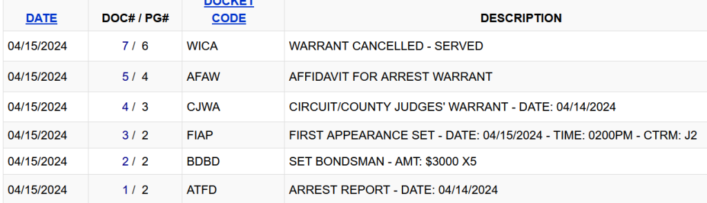 He was facing a misdemeanor that was filed March 28, 2024