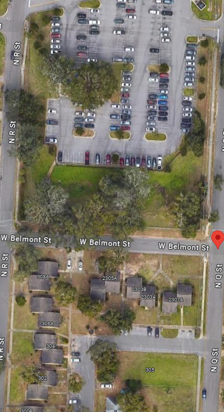 In the image of her there are clear parking space lines and the only thing I can see on that block with parking spaces is the Community Health Northwestern Florida center. If you zoom into the street level you can also see the telephone poles which you can see in the photo of her and they would most likely have surveillance video there. Did she maybe have an appt there?