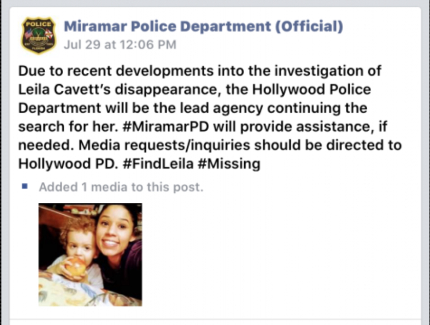 Cavett's father and grandfather told NBC 6 said a man, who they didn’t identify, messaged Cavette asking her to come to Florida and may have sent her money, too. Police have not corroborated the details her family shared. Her family has also said it’s not like Cavett to leave her son alone.