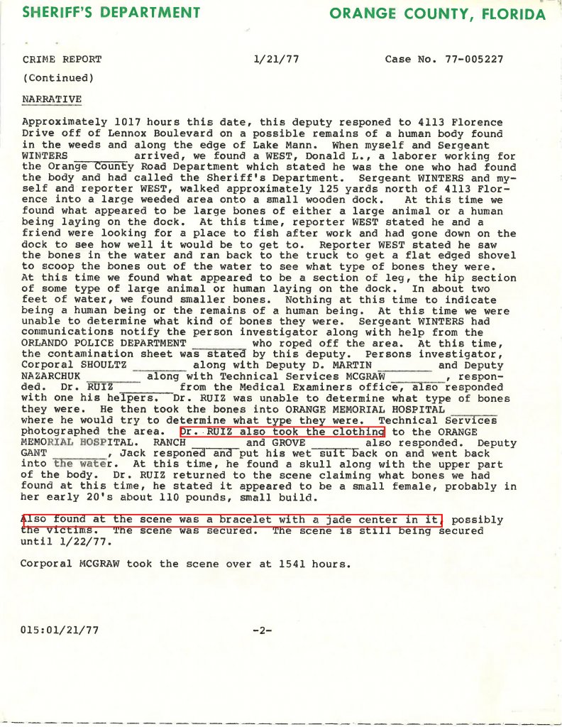 Today I recieved a response to my FOIA request on Nancy Grace Daniel. They only sent me 2 pages of the original incident report, claiming exemptions related to an ongoing investigation. I thought I'd post the two pages here, as I know there are quite a few people looking into what I think we can all agree are the possibly related cases of Nancy Daniel and Mabel Andrews. It's hard to cover these cases without any case documents, but I'm wondering if anyone is looking into other possible related cases in the area, with the idea of a serial offender. OCSO has traditionally been difficult to get documents on open cases from, unlike many of their neighboring county counterparts, but I think it might at least be worth the effort to start looking for any other possibly related cases. If anyone else is doing so, let me know.