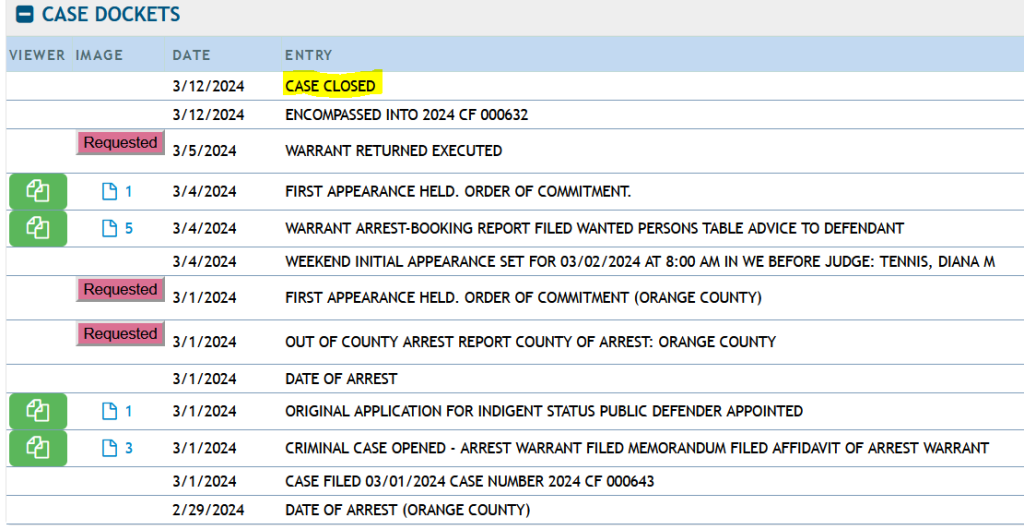 | The State of Florida - 2024 CF 000632 | Earliest dated count of sexual battery against SS. | |