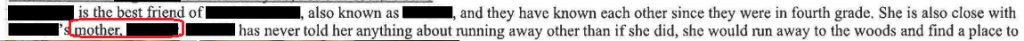 For example, in the same interview/page... the BFF obviously calls her Jennifer, not Jenn, as the redaction is longer. JMO
