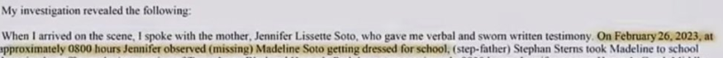 You see with your eyes, you don't necessary have to use your eyes to observe something. But we all know she didn't actually "see" MS. Could she have "observed" who she thought was Maddie? Shower running, her favorite cup in the sink that wasn't there the night before, clothing no longer laid out so figured she got dressed, hearing light footsteps in her room so figured it had to be Maddie. Those are just examples of "observing" to come to a conclusion that someone was there doing those things. But with all that said, I don't think she observed any of those sorts of things either. I believe she knew from the get-go that Maddie was deceased, and whatever word she used with LE was an out-and-out lie. MOO
