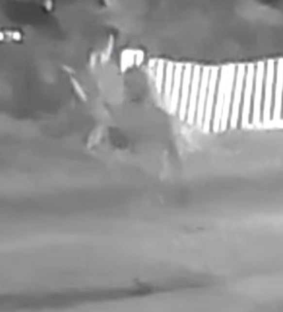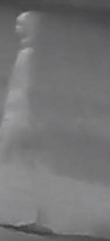 OK, I created a GIF of six seconds of the cctv video that police released. What's glowing in their pocket? Looks like they're also holding something. Do they have two phones, one in the back pocket and one in their hand? Could they be holding a weapon? Or are they not holding anything? Hard to tell due to the poor video quality.