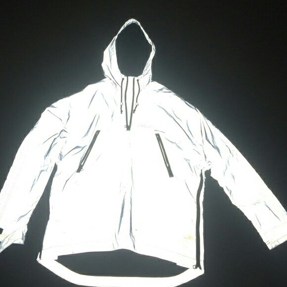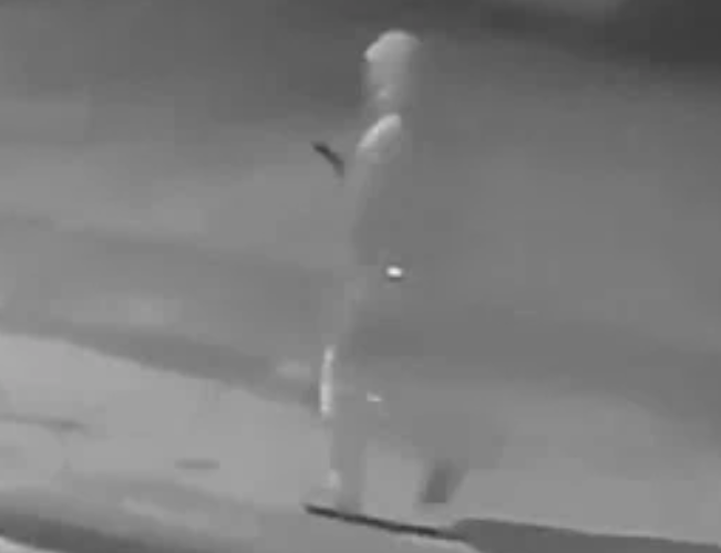 IMO, I think instead of pecs or breasts, what we see is reflective or decorative strips on the jacket. This would make sense if the individual is wearing athletic apparel, which seems very possible. I'm thinking of something like this, but with colors reversed. MOO, as always.