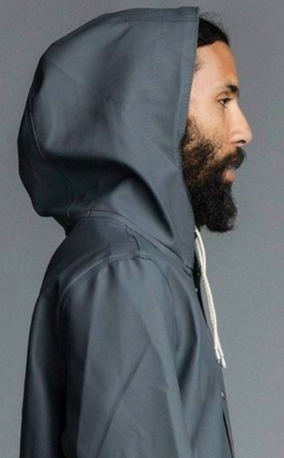 The coat this person has on reminds me of a woman's raincoat. Does not look like it fits correctly either. Or maybe it could be the height being tall and lanky making it look that way to me. Just my own thoughts.