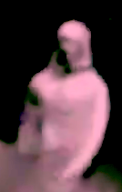 Raincoat seems tighter around his chest and shoulders. He may be wearing it to obstruct his features and to then look different with it off in site of other cameras where he retreats. The way he swivels his head, mostly with his chin up, from side to side slowly scanning, then a couple of longish stares in the direction of the camera, seems like he has a hard time making things out maybe? The way he shoots his victims, up close, something about all that makes me wonder if he has bad eyesight. Tries to exude confidence but his eyes seem to dart from side to side, like he's telling himself to look cool and calm, but who knows? I think everything he does is mission oriented, to kill as unseen as possible and to flee. He seems comfortable in his raincoat, doesn't ever tug at it or anything. It must be a pretty thin raincoat, since whatever device that's in his back pocket reflects through it. If he keeps his gun in his raincoat pocket, he could stash both in a bundle. He seems deliberate, organized, clean, travels light on these occasions. Nothing lumpy on his hips. He leans forward posture wise, his back end kind sticking out and up on his left side. For some reason his posture reminds me of the way people stand at counters or doing dishes.