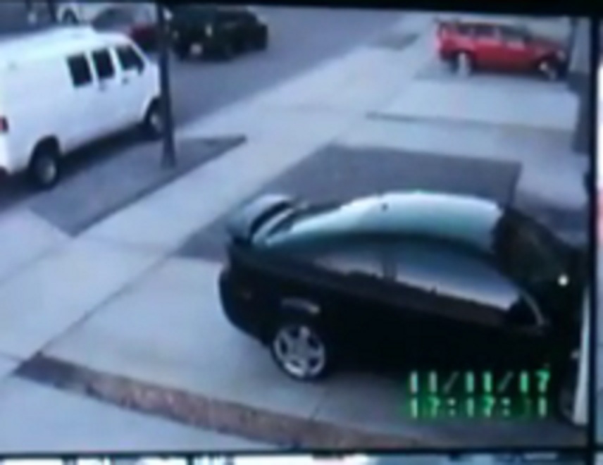 It is really hard to tell but there does appear to be something light coloured on the left side of the vehicle that does not match up to the right tail light in the blown up pic that you've attached.