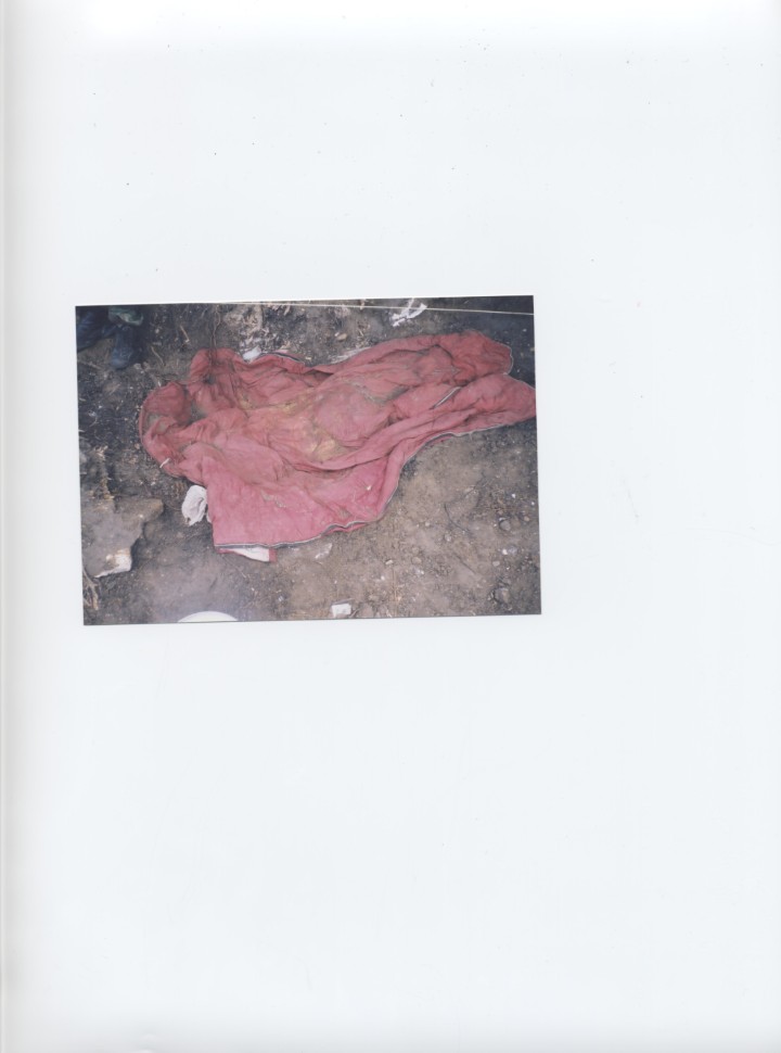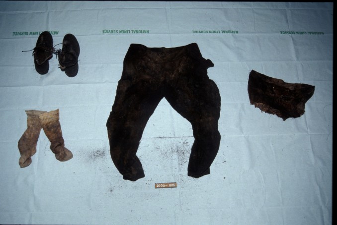 fragments of shirt; black sweatpants (size medium); undershorts (size medium)