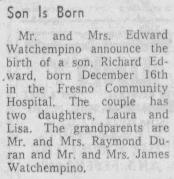 Circumstances: Family of Richard Watchempino Jr last heard from him in April of 1981. Mr. Watchempino Jr at the time was residing in the City of Miami, where he was a cab driver.