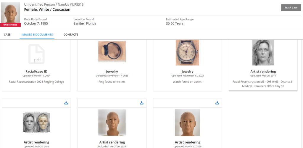 Her case is listed under LCSO Case# 95-128401 and ME 1995-00463A. DNA was submitted for genealogical testing and her origins traced back to a small population of 11 counties in South Carolina, to include Charleston County and Orangeburg, SC. A newspaper article indicated it was the third time in 14 months a dead woman was found floating in Lee County waters. The body of a woman was found floating off Bunche Beach in August 1994 and in December 1994 a woman was found washed up on a Caloosahatchee River beach in eastern Fort Myers. Detectives searched for employees that could match from the Cath lab at Charleston S.C. V.A. Hospital and found an "Amanda" had run off with a doctor. They eliminated her because the unidentified woman was believed to not have had any children according to the medical examiner and "Amanda" did.