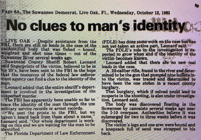 1983 SUWANNEE COUNTY COLD CASE SOLVED;