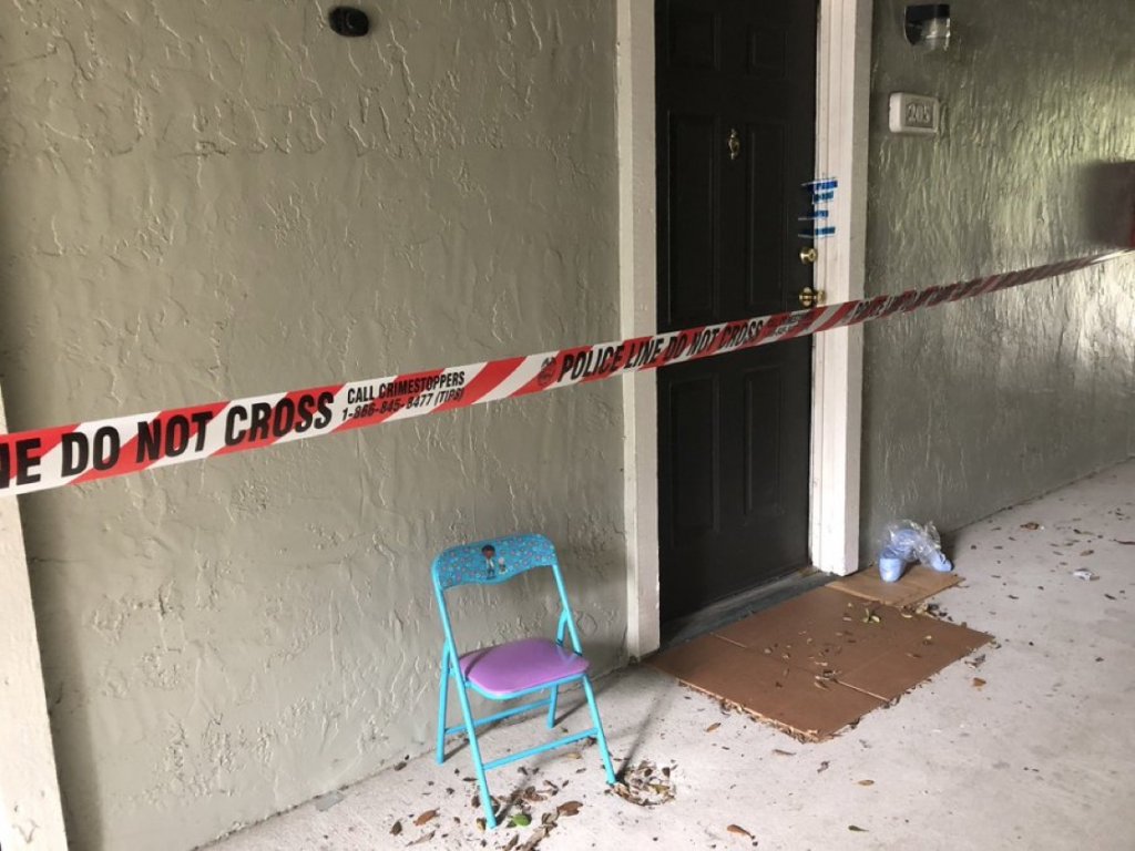 An unsettling sight... A child’s chair sitting in the middle of a crime scene at this Southside apartment complex.