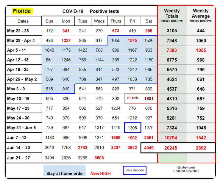 EXACTLY. the Protest numbers will start coming into play now too. But this batch is from DeSantis opening the beaches for Memorial day and letting people SWARM them. ALL for the mighty buck and to make Florida seem just dandy. Bring in people from other states, Sure, who cares? He's not been realistic at ALL in this situation. Can't wait to vote him out.