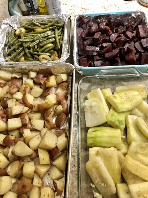 Veggie prep day here. I’ve never roasted cabbage before. I read a few recipes and it sounded good. It chars a bit which is expected. After all the other veggies were done, I turned the oven down from 400 to 375. I’ve stirred it twice so far. It sure smells good.