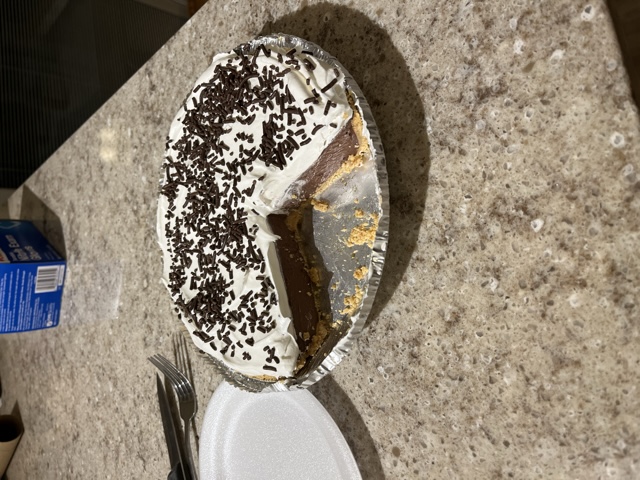 Oh, and I made a chocolate cream pie for my dessert this week. Nobody is here so I don't have to share it! Ha!
