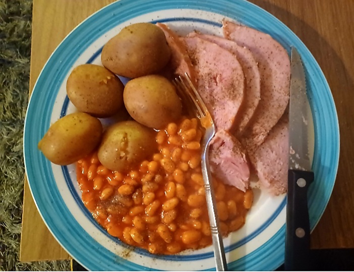 I had slow cooked gammon, new potatoes, baked beans and lots of black pepper. Really easy dinner to make, I add the potatoes to the slow cooker too, so only need to heat the beans. It was really tasty. I've been using the slow cooker weekly of late, and they say it's also a cheaper way to cook compared to an oven.