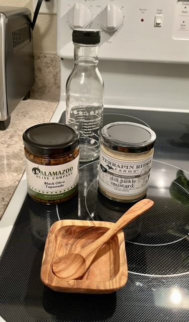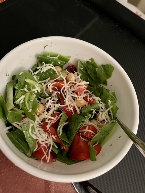Having had an appetizer, we knew that we couldn't eat the side of pasta that accompanies non-pasta dishes, so we asked our waitress to package them to take home. I had no idea that my beef tenderloin was accompanied by a baked potato! It was large and a bit underdone, but I ate as much as I could. The filet mignon was perfectly medium rare, and I loved the charred exterior. The sauteed veggies that we both had were colorful and tasty. I had asked for the "zip sauce" (for steak) on the side because it is very salty and often "buttery" (greasy might be a good way to describe it). I really don't care for Zip Sauce even though it's a Detroit phenomenon.