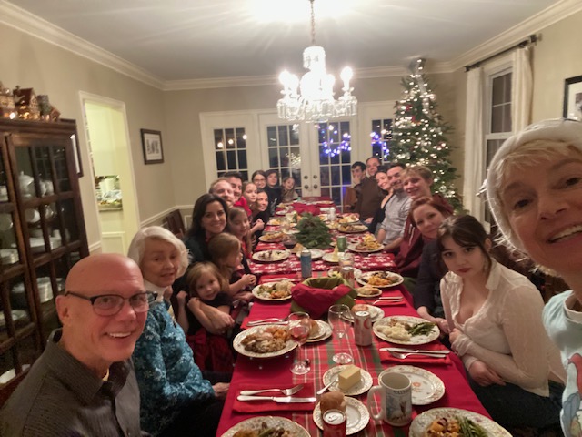 My sister hosted our annual family party on Christmas Day. This year it was dinner for 21!! Thank goodness she has a big house, complete with a “Butler’s Pantry”. There is no hired butler or cook, just us sisters, moms, grandmothers and daughters cooking up a storm. Among the delights were salmon, beef tenderloin, lentil roast, butternut squash risotto, roasted asparagus, garlic mashed potatoes, baked Mac and cheese, stuffing, green salad and rolls. It was a wonderful day.