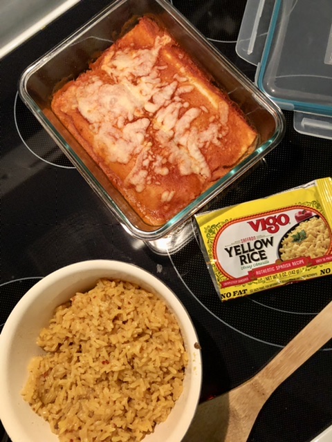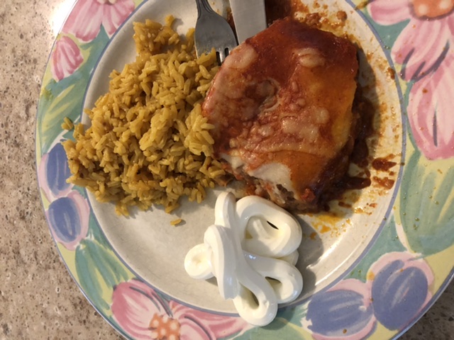I thawed my 2 enchiladas this morning. Then made a packet of yellow rice. I didn’t screw it up and it’s edible. Ha!